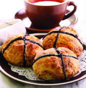Give the classic hot cross bun a delicious twist with the addition of chocolate chips, orange zest and piped chocolate crosses!