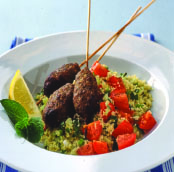 4. Serve the koftas with the couscous and tomatoes, garnished with lemon wedges and mint sprigs.